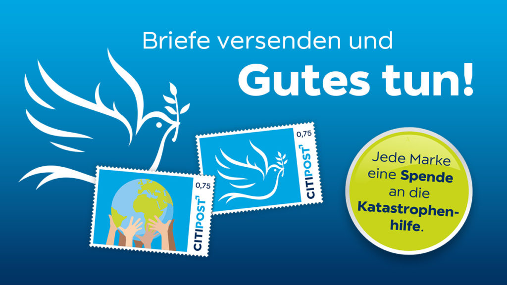 Bei diesen Briefmarken handelt es sich um eine besondere Ausgabe. Für jeden verkauften Bogen dieser Briefmarkenserie spendet die CITIPOST GmbH 1 ,-€ an das Aktionsbündnis Katastrophenhilfe, welches in der Ukraine Nothilfe leistet und Menschen vor Ort, sowie Geflüchtete tatkräftig unterstützt. Die Marken der Wertstufe 0,75 € für einen Standardbrief können für den deutschlandweiten Versand genutzt […]