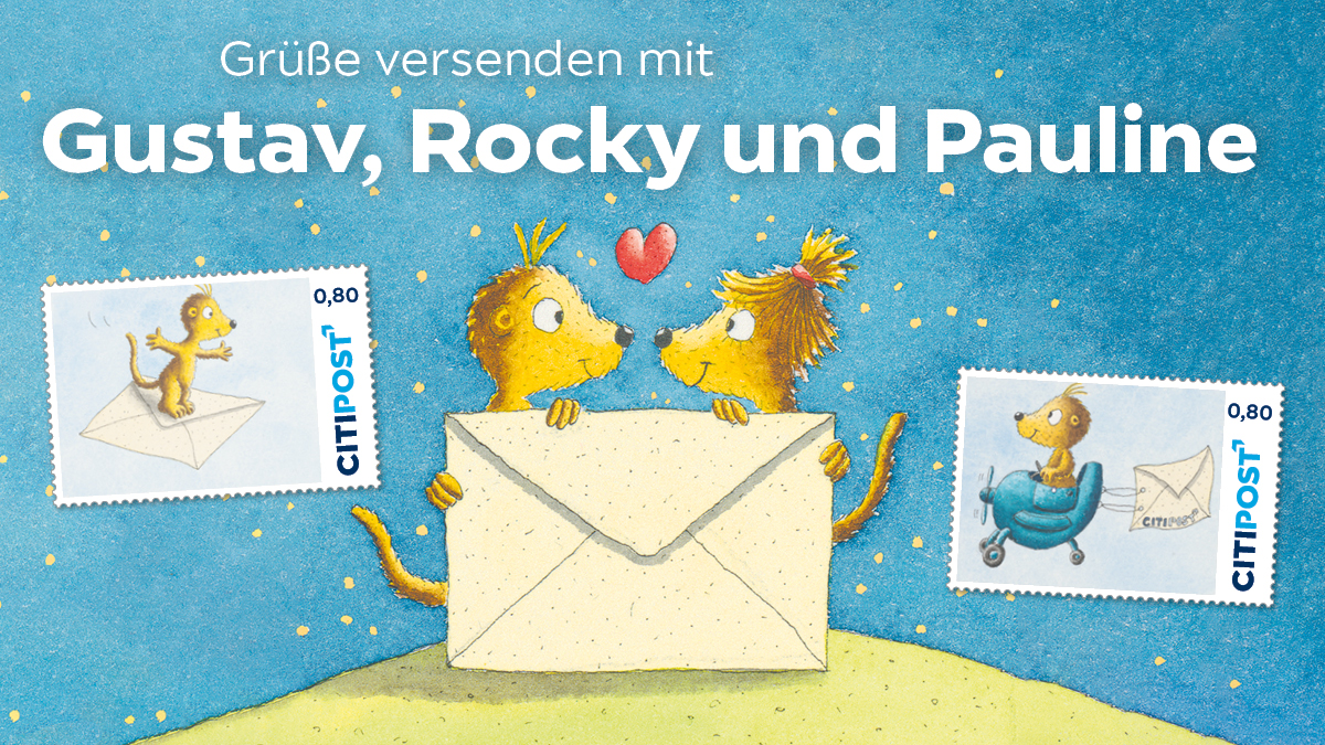 In Zusammenarbeit mit dem bekannten Autor und Illustrator Ingo Siegner aus dem schönen Großburgwedel hat die CITIPOST GmbH am 01. September 2022 neue Briefmarken für einen Standardbrief zum deutschlandweiten Versand herausgebracht. Darauf zu sehen sind die drei aus den Kinderbüchern bekannten Erdmännchen Gustav, Rocky und Pauline.