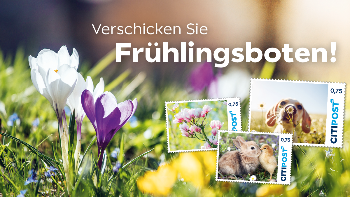 Passend zur Jahreszeit und dem, zumindest derzeit, schönen Wetter hat die CITIPOST die Briefmarkenserie Frühling 2022 herausgebracht. Mit unseren neuen Briefmarken der Wertstufe 0,75 € versenden Sie Ihre Standardbriefe deutschlandweit zum günstigen CITIPOST Tarif.